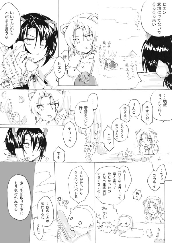 GTGT d(´v`) 養ってください、フィーリング。 次からやっと本題に入ります。 この微妙な人物相関図も次回から第5部までという 長期間をかけてのろのろと語られます。 分かりにくいと思うのであえて言っておくと 3ページ目のメリーはりんごを切り刻んでいます。 (もっと分かりにくいところがあると思う) 戻る